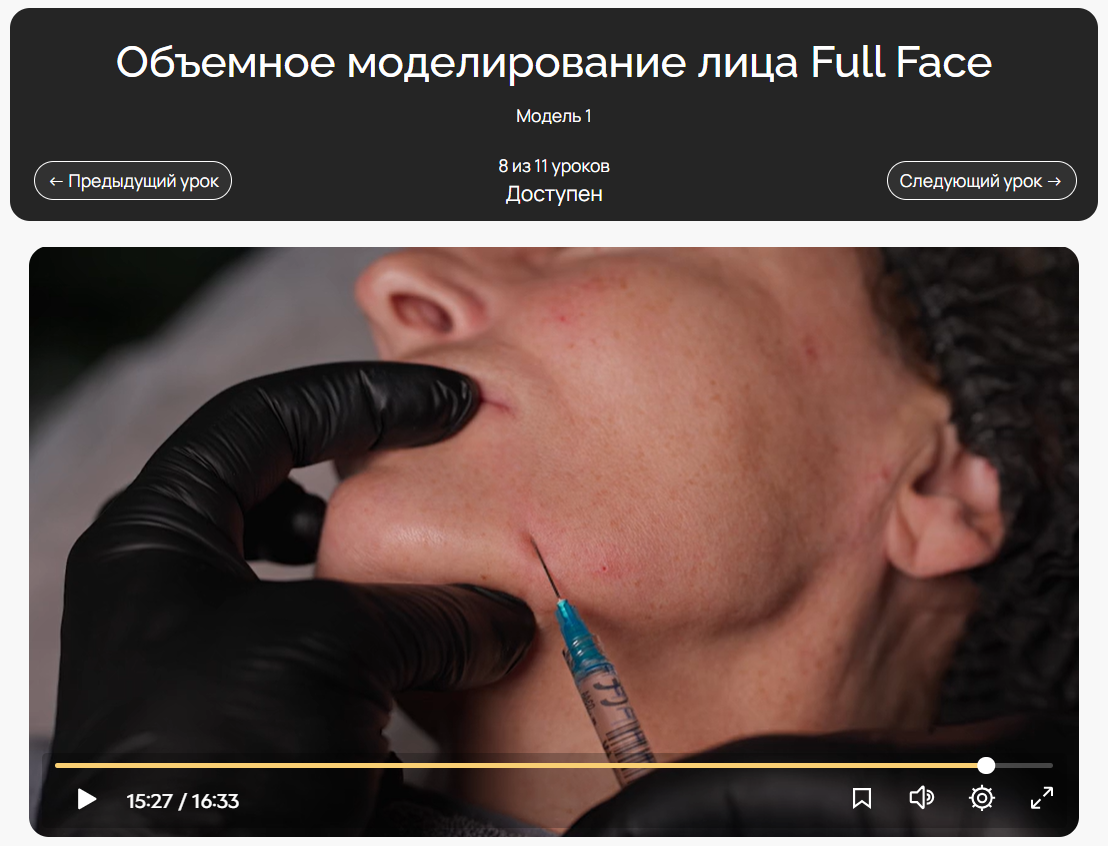 Практические видео-уроки сняты на реальных моделях в HD-качестве с макросъемкой инъекций. Вы видите весь процесс процедуры максимально детально - вплоть до глубины ввода иглы или канюли.